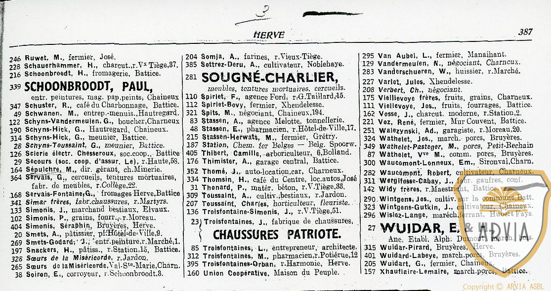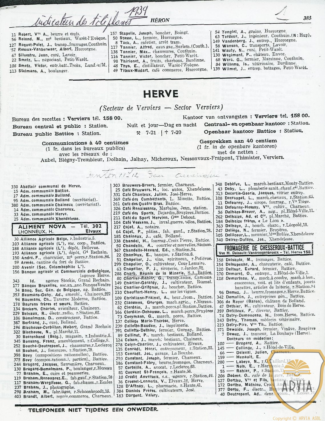 HERVE – 1939 – Annuaire Téléphonique avec adresses et professions 16 mars 202616 mars 2026 Jean-Marie Doppagne Adresses Utiles sur HERVE. Liste intéressante pour retrouver des adresses complètes en 1939 sur HERVE. P. LUTGEN affiché en 1939 comme plombier – zingueur rue Haute.