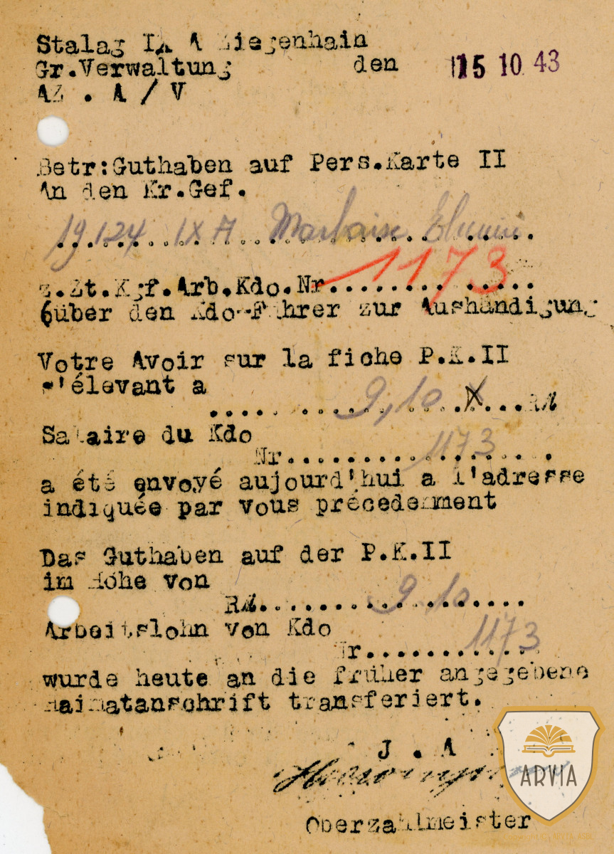 HERVE-1943-fiche de salaire de travail au commando d’un prisonnier de guerre 9 mai 2020 Gérard Bonsang