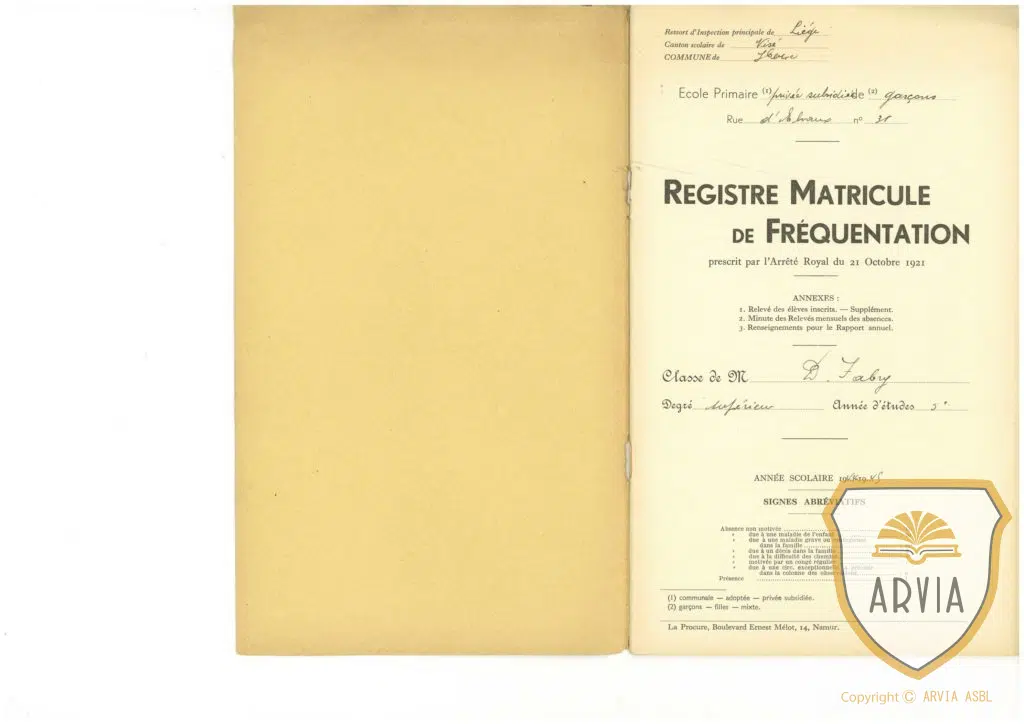 Cet article reprend les registres de présences de la classe de Mr D. FABRY , instituteur à l’école St Joseph de Herve. Il s’agit d’un témoignage des jours d’absence pour causes diverses dues à la guerre (bombes volantes, offensives, armistice).