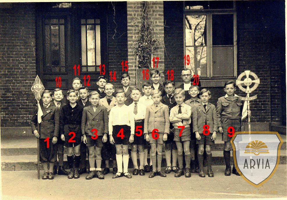 Le premier à l’extrême gauche qui porte un pantalon golf et le fanion CE Roger Rassenfosse, mon père. Guy Detry , Gaston Jame , Joseph Meurens . . .(Guy Liégeois). n° 6 Albert Charlier, dont le papa Guillaume était négociant en charbon et frère de Mme veuve Jean Kroonen récemment décédée.