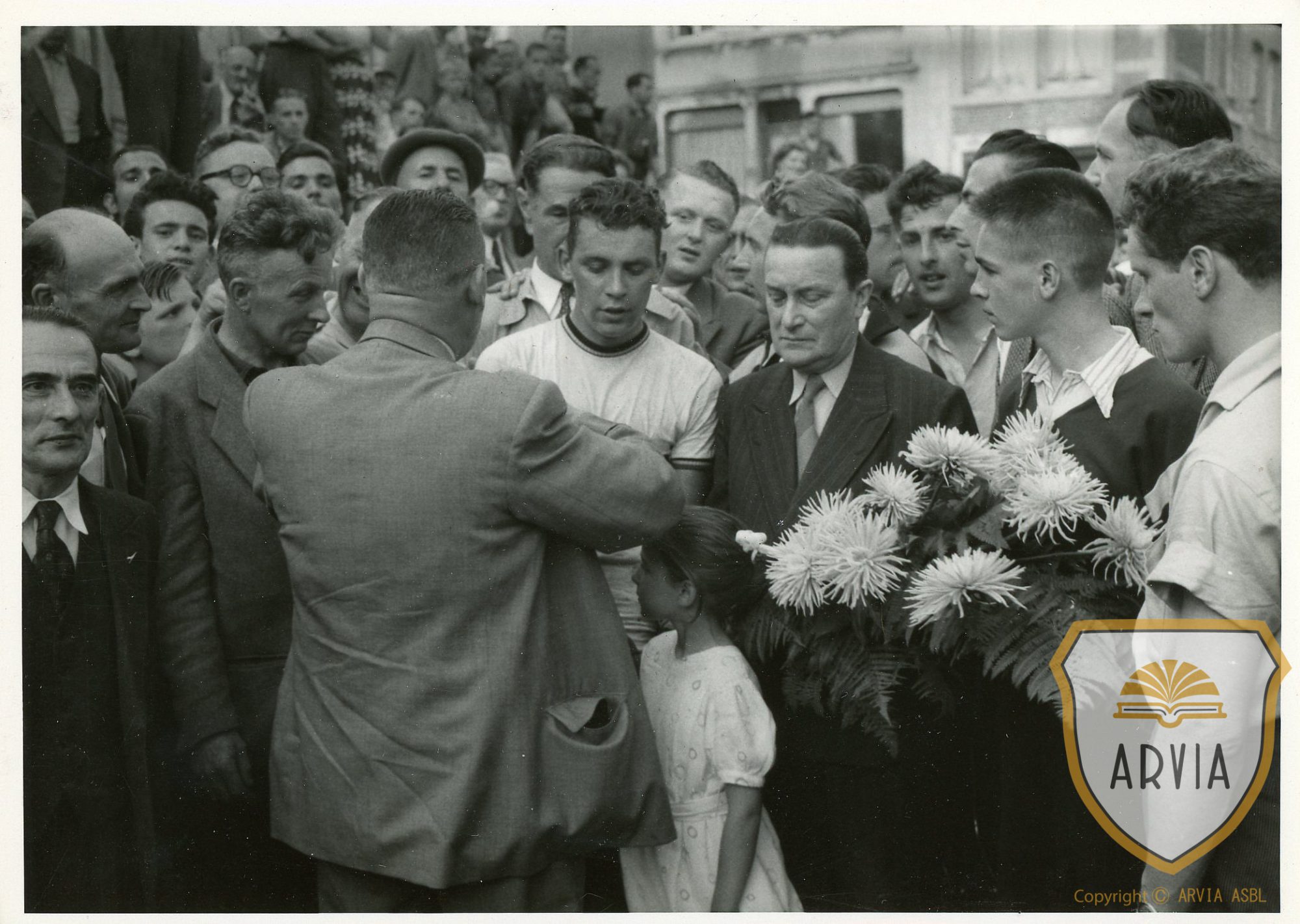 Bonjour, ce n’est pas Ernzer, je pense qu’il s’agit de André Bar lors de sa victoire le 16 juillet 1955 dans la course Herve-Targnon-Herve, course qui a décerné le titre Provincial Liégeois des coureurs amateurs. (Sans certitude… JP Ropet )