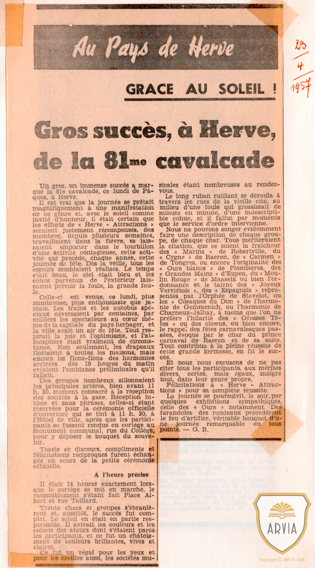 HERVE-1957-04-22-Cavalcade + article de presse de G.Baltus 6 février 20256 février 2025 Gérard Bonsang