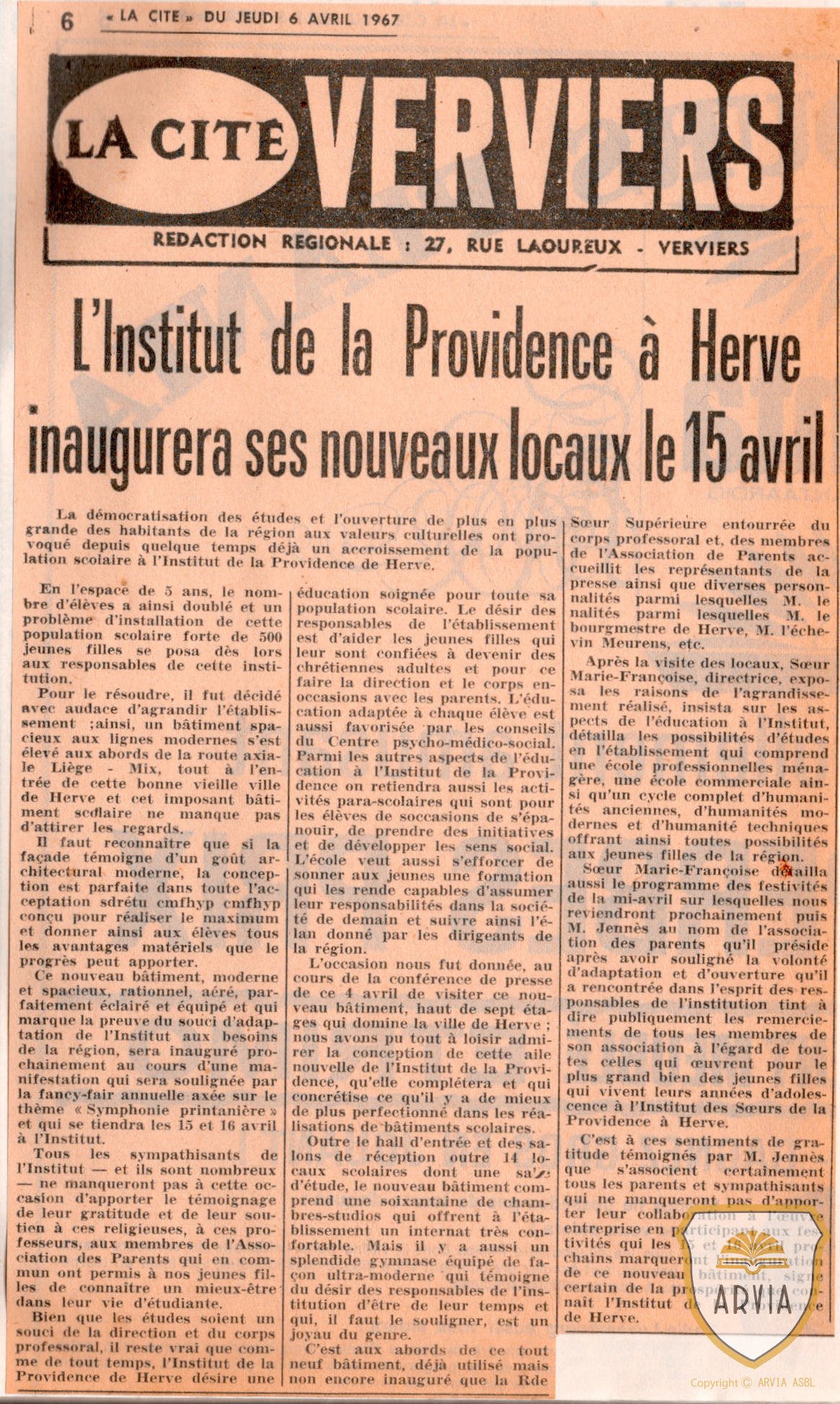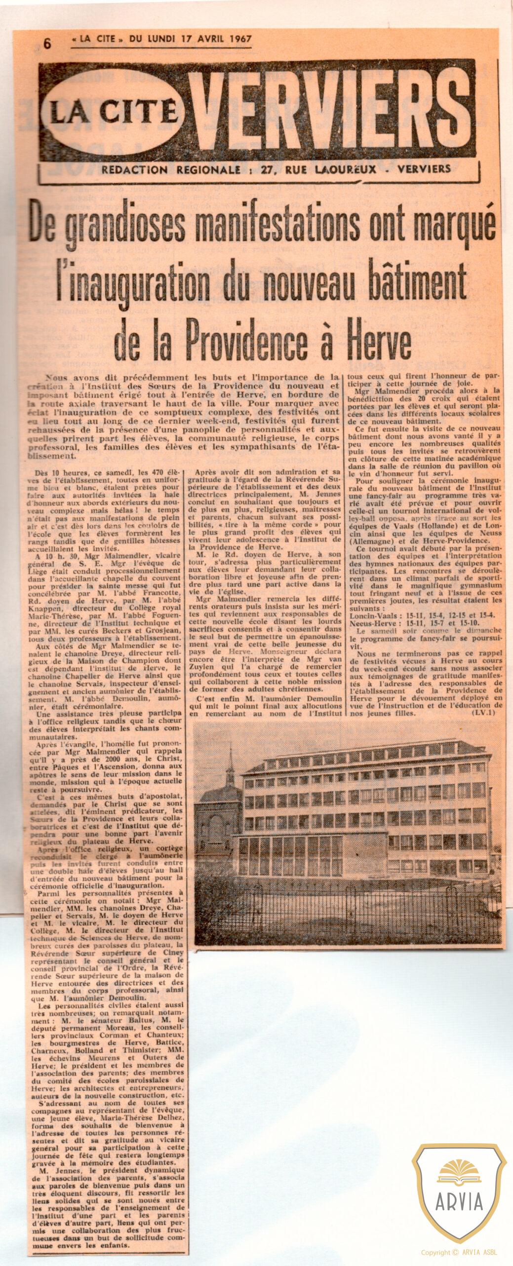 HERVE-1967-3-15 – Nouveaux Locaux de L’Institut de la Providence 13 octobre 202513 octobre 2025 Henri Balhan