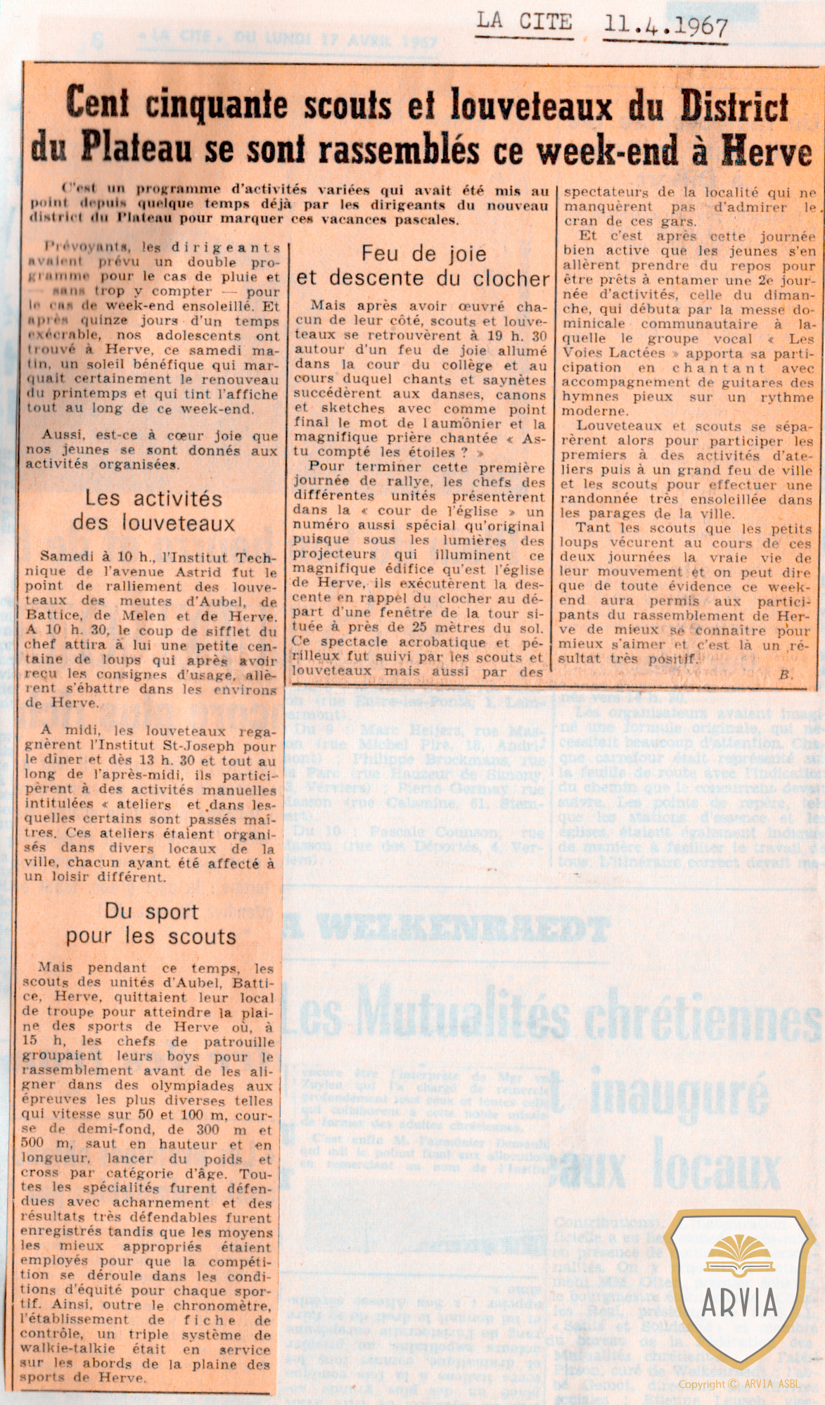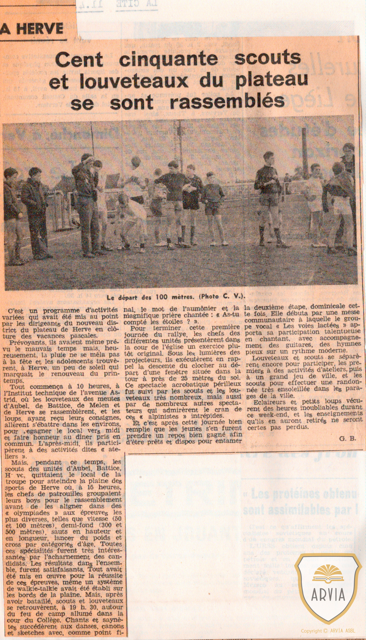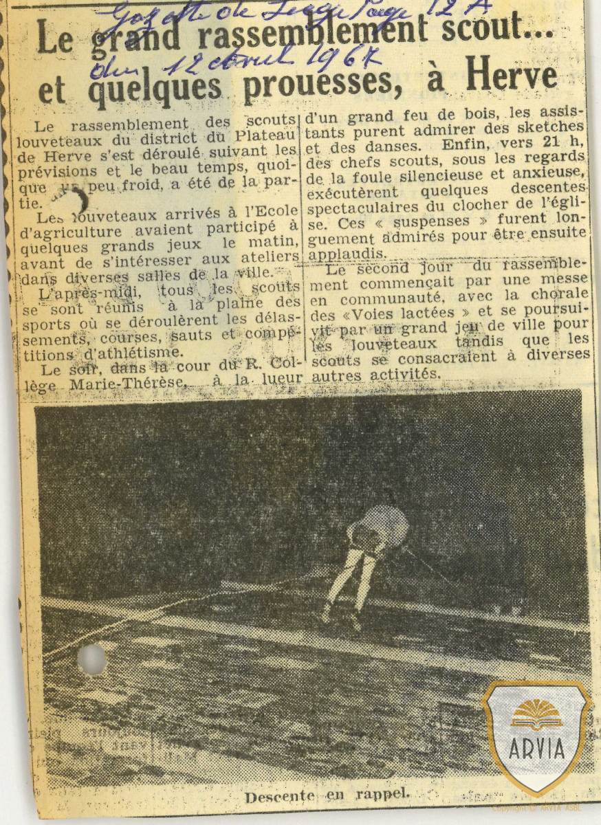 HERVE-1967-coupure de presse-Grand rassemblement de Scouts & descente en rappel de l’église 13 octobre 202513 octobre 2025 Gérard Bonsang