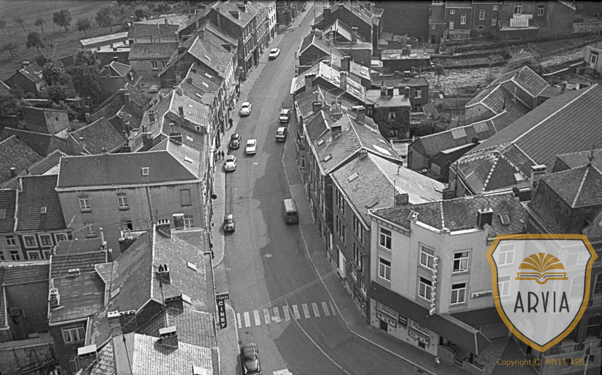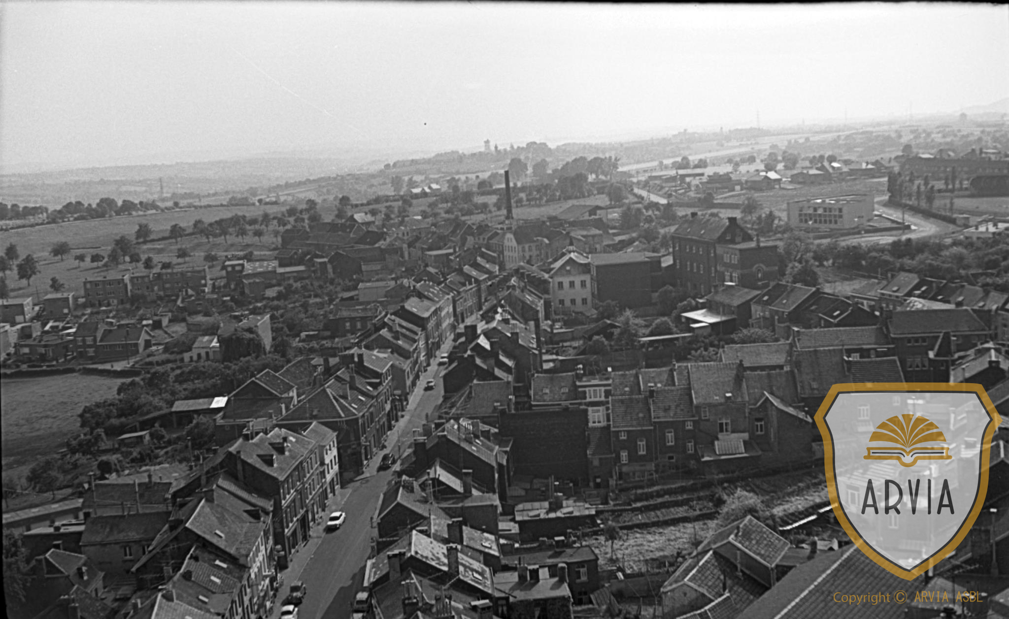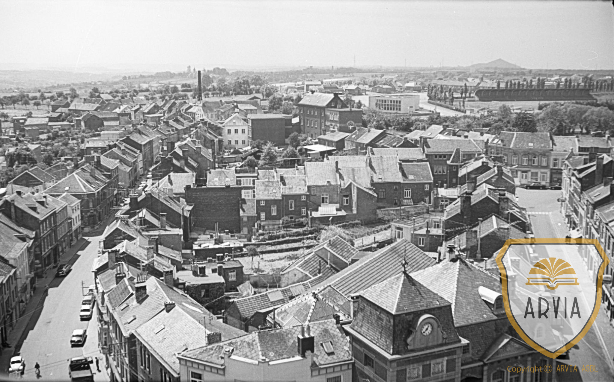 HERVE-1969-06-16-Eglise panorama du clocher-vue sur la rue Jardon & Roosevelt 21 octobre 2020 Gérard Bonsang