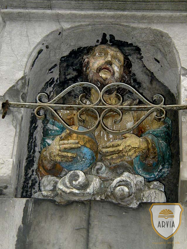 Remarquons l’étrange figure encastrée dans la façade, c’est le Père éternel, « LI vi bon Dju ». C’est une des plus belles pièces populaires de Herve, qui date, tout comme la maison d’ailleurs, de 1737. C’est évidemment pour assurer la protection divine sur le puits et la maison que J. Delhez place cette statue.