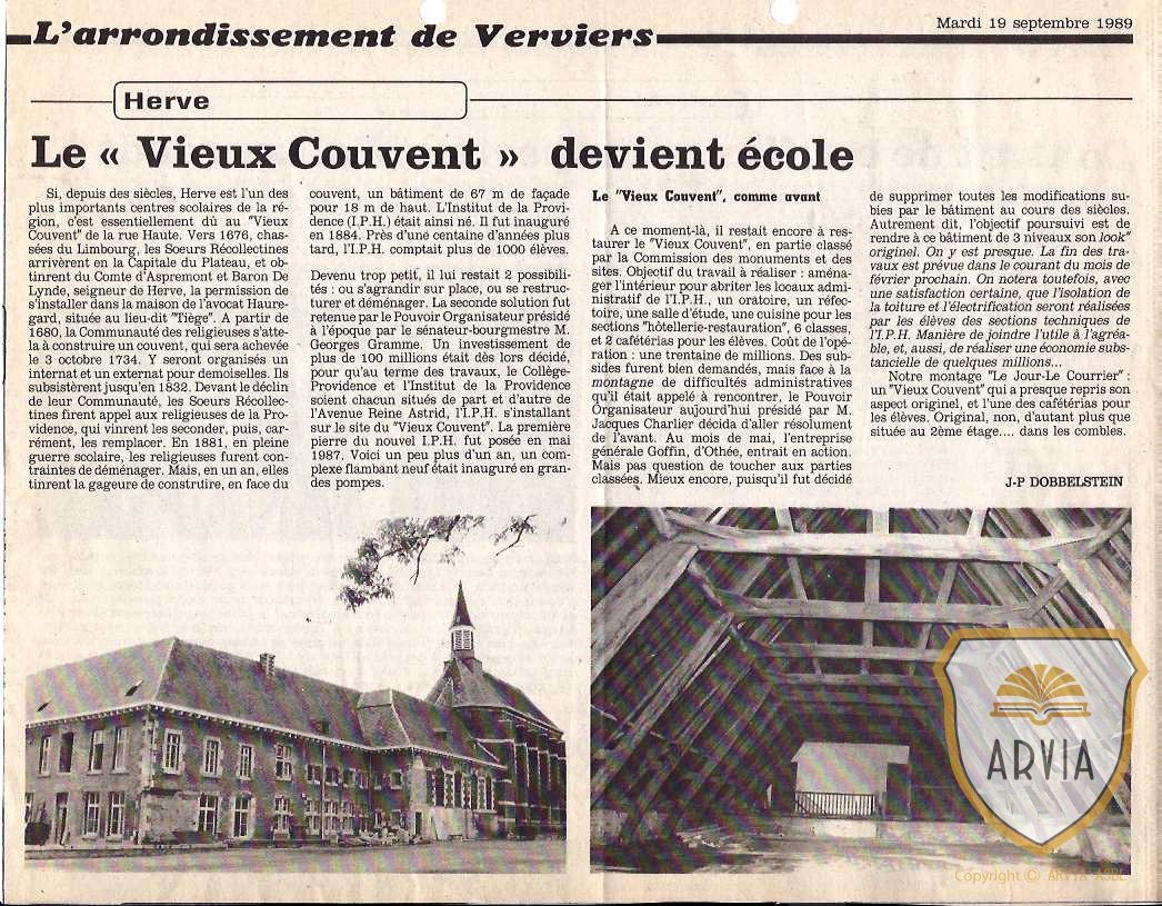 HERVE – 1989 – Le Vieux Couvent devient Ecole – 19 Septembre 1989 18 janvier 2018 Jean-Marie Doppagne