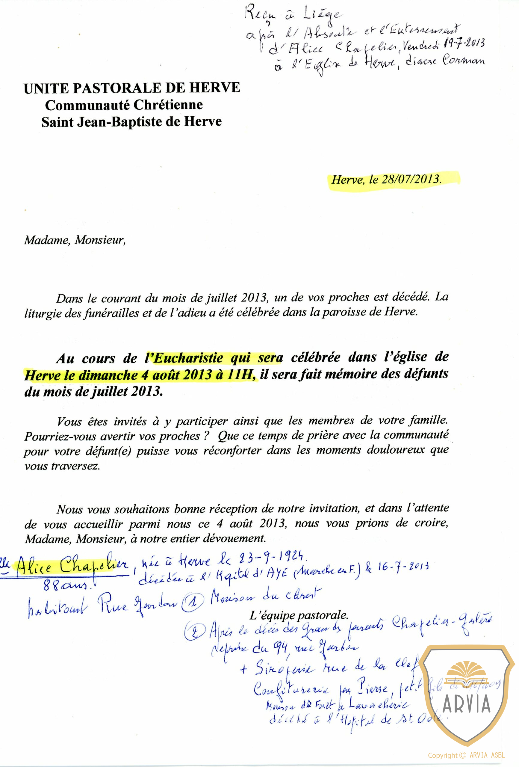 Melle Alice CHAPELIER est née à Herve le 23/09/1924