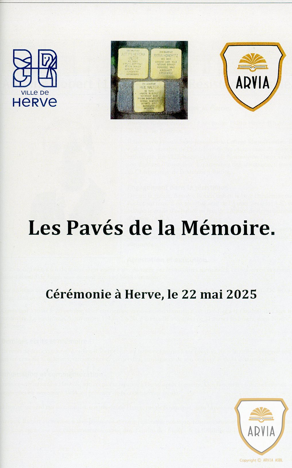 HERVE – 2025 – les Pavés de la Mémoire – cérémonie du 22 mai dans les rues de Herve.