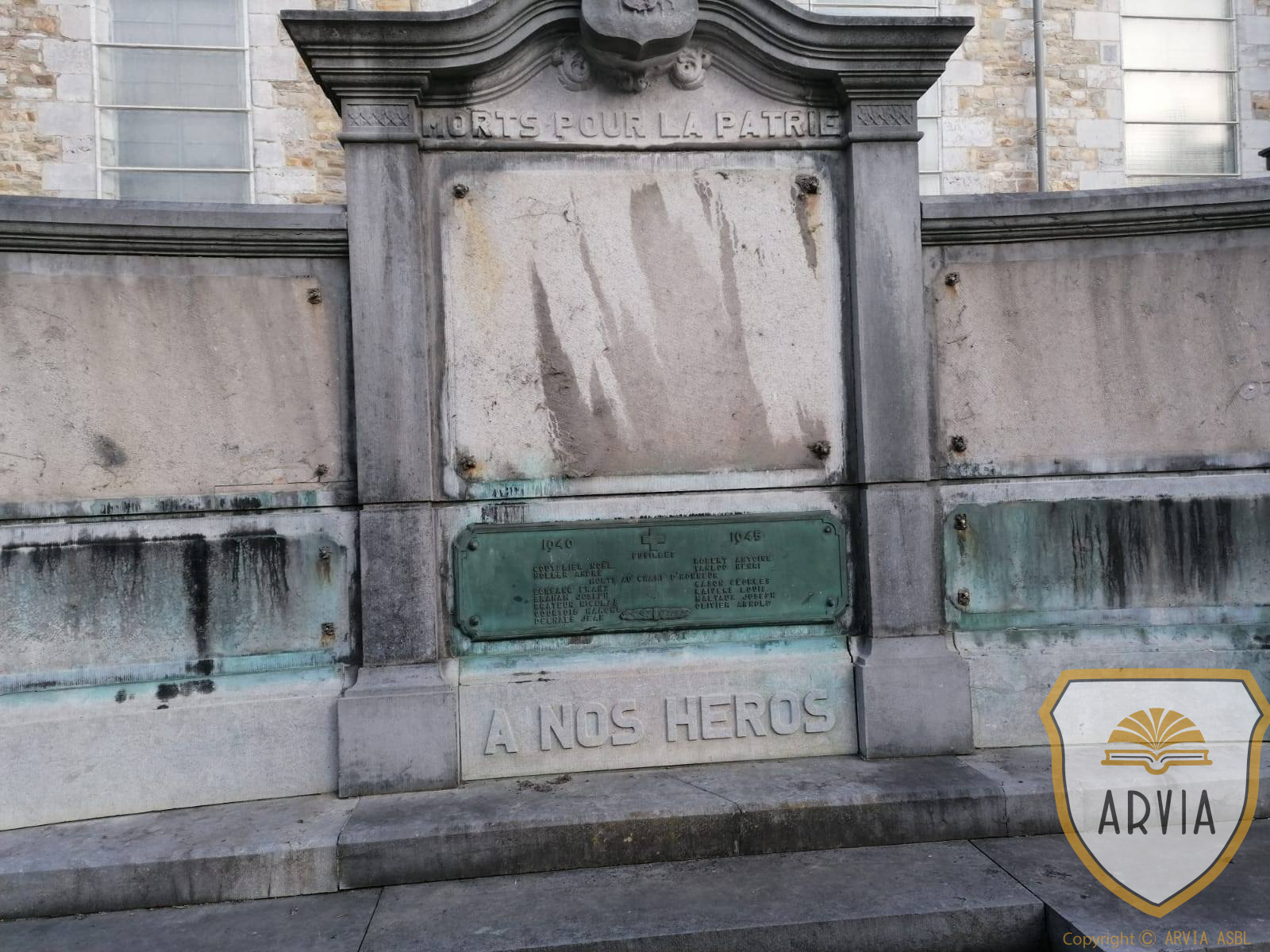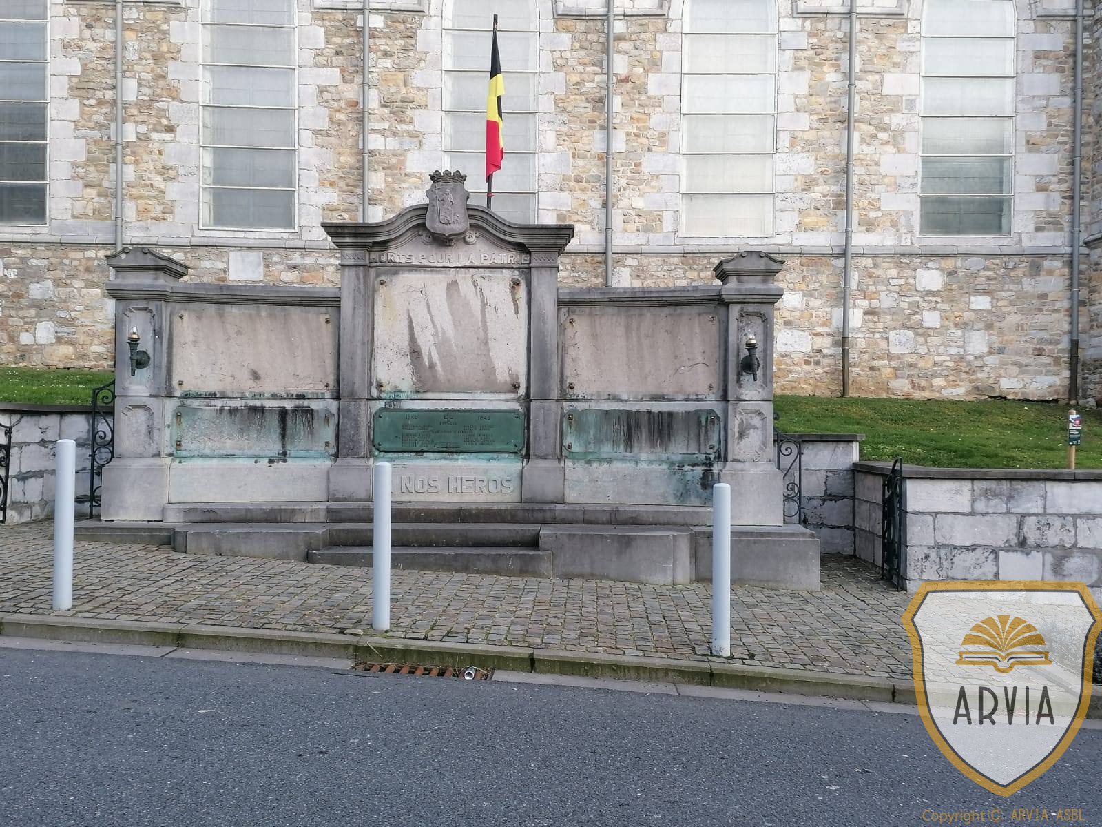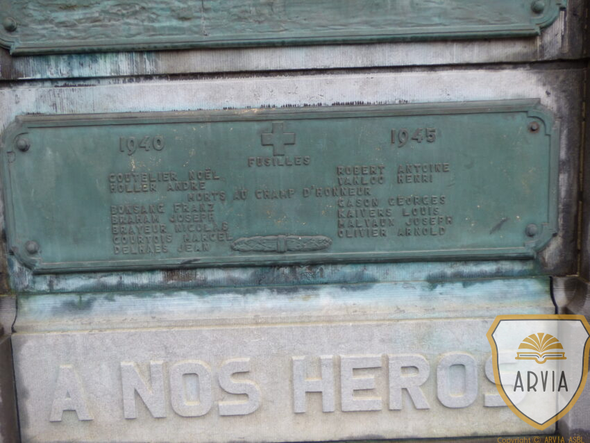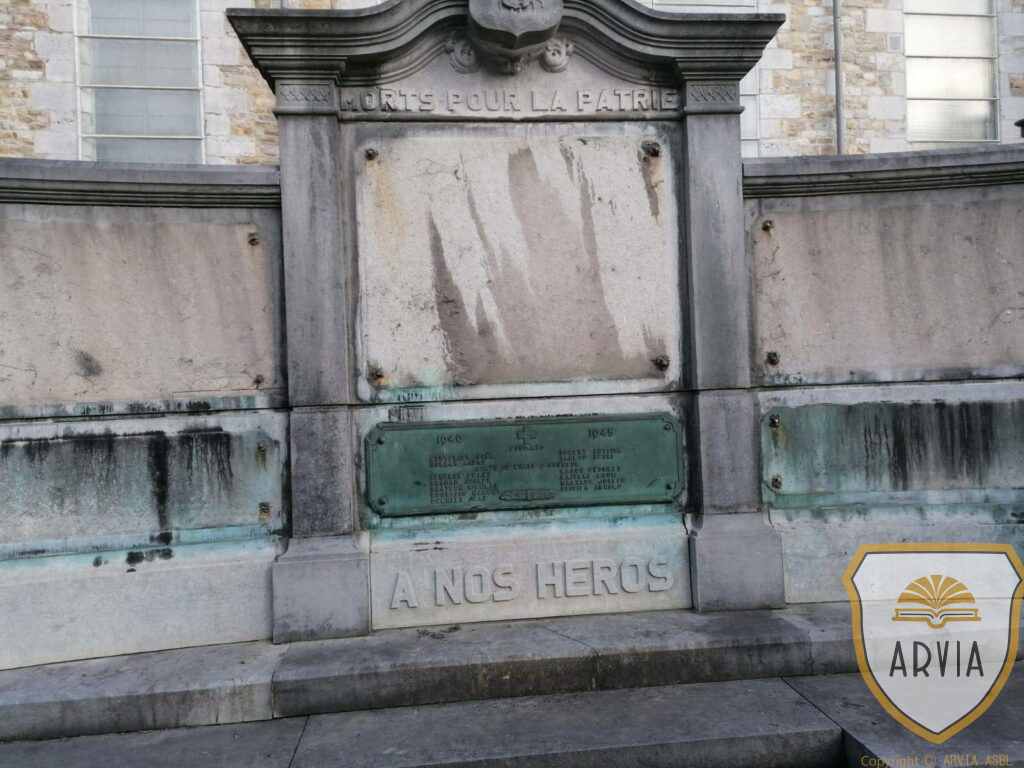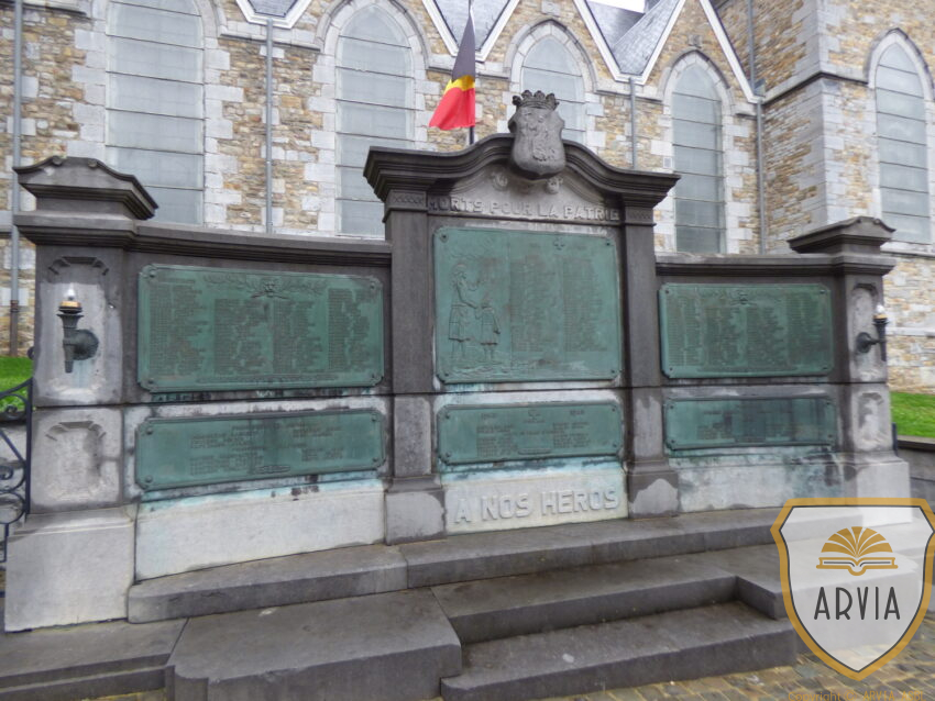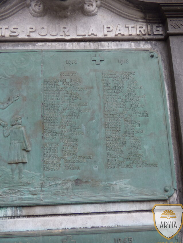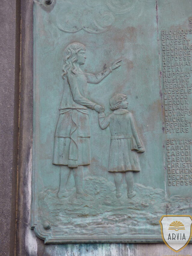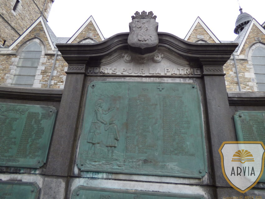 Monument commémoratif constitué de plaques en bronze à côté de l’église saint Jean-Baptiste.