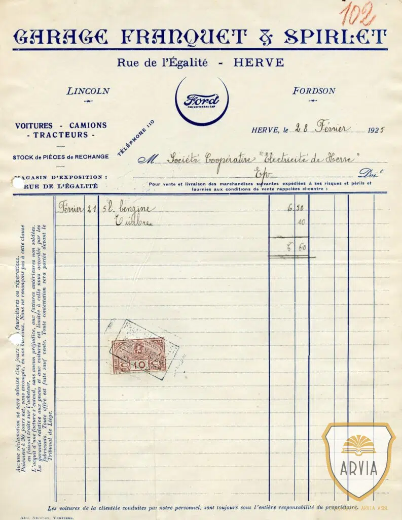 HERVE-Electricité de HERVE-1925 – facture Garage FRANQUET-SPIRLET 7 janvier 202312 janvier 2026 Henri Balhan