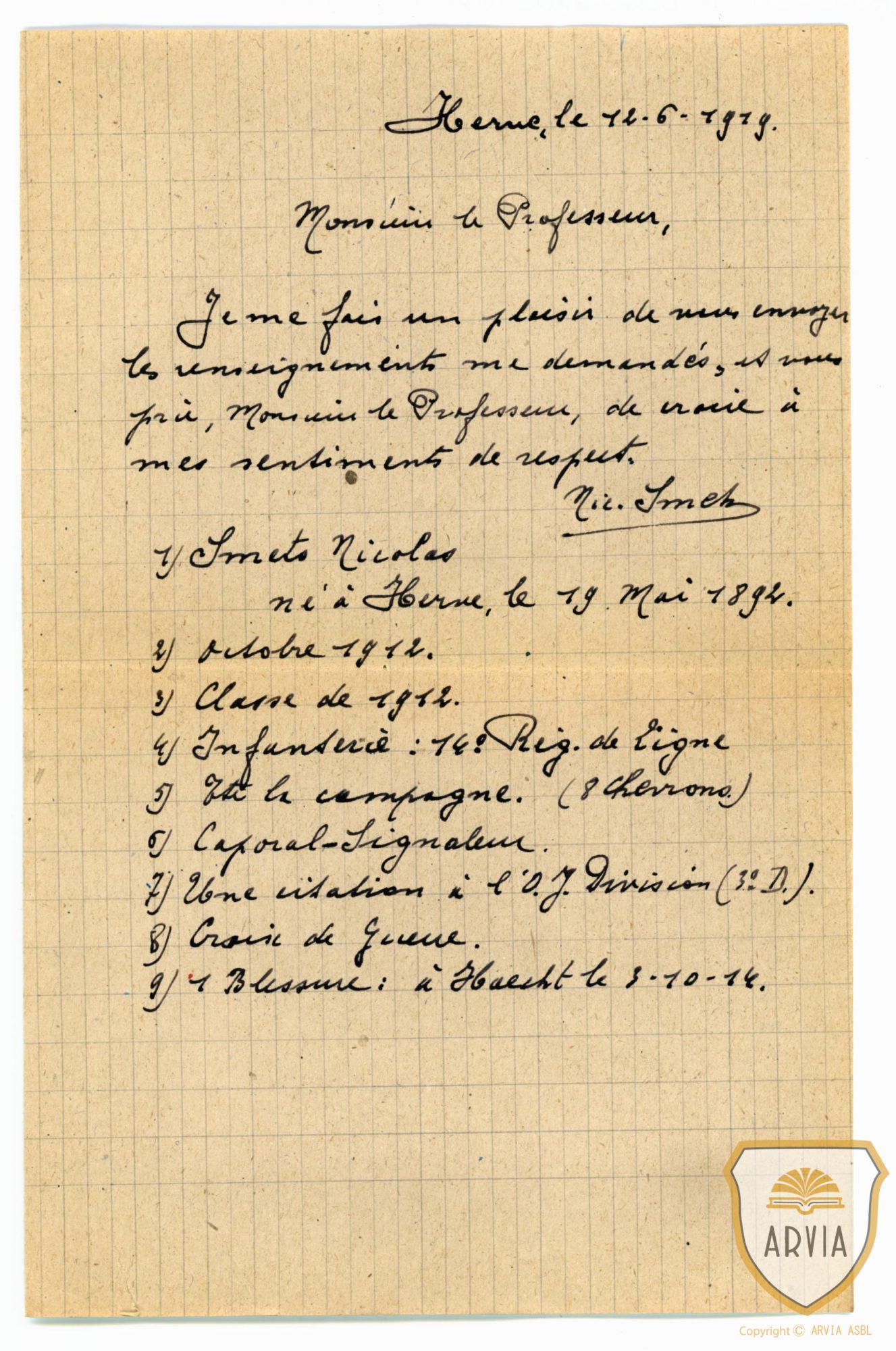 Né à Herve le 19 mai 1894.