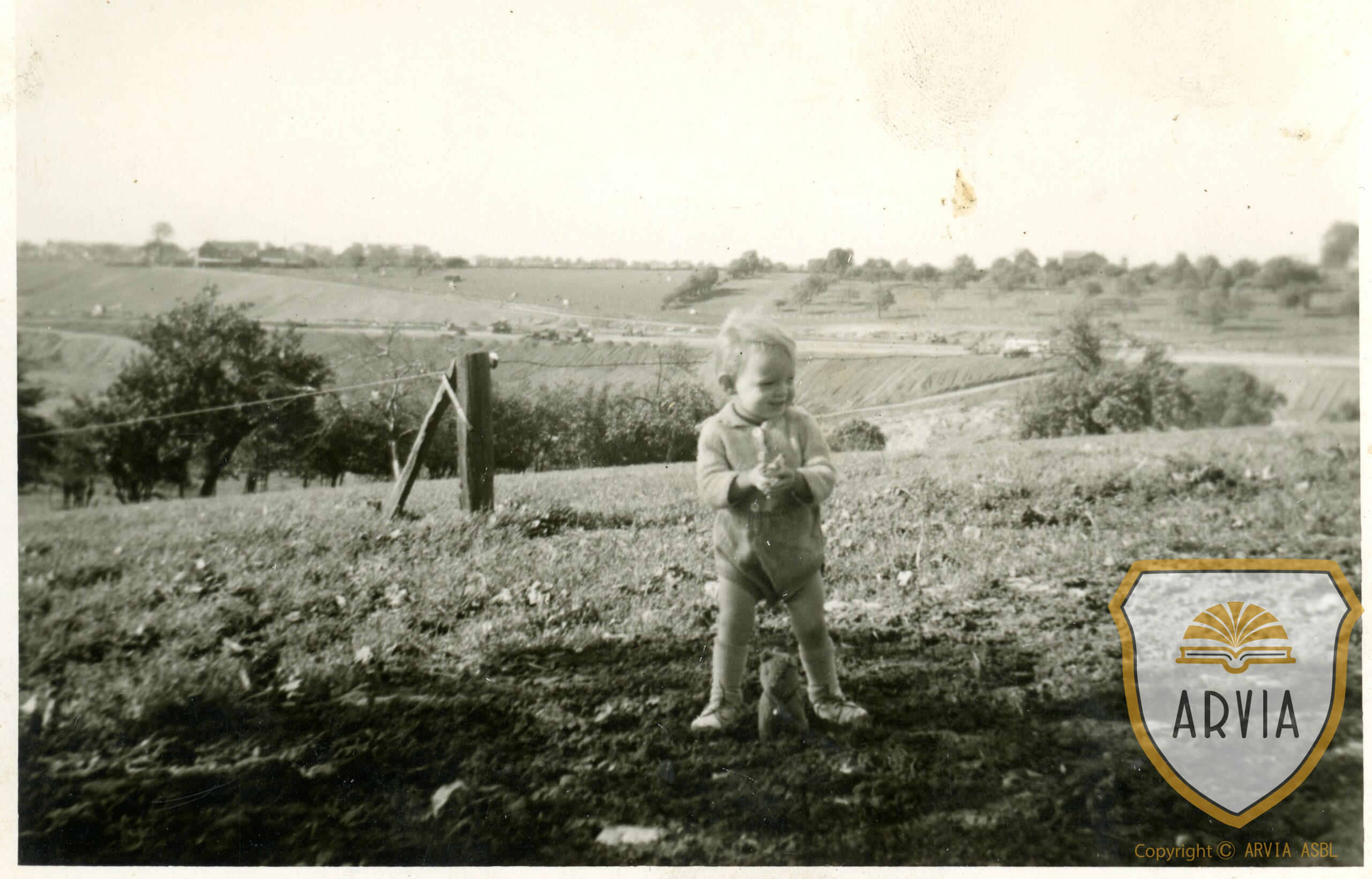 Albert Rennotte, Hubert Rennotte, Jean Rennotte, Anne-Marie Rennotte, Mme Victoire Flas épouse Peerboom (maman de Marie-Huberte Peerboom épouse Albert Rennotte; elle habitait Moresnet à la ferme du château d’Alensberg) ; vu l’âge d’Anne-Marie, photo datant à mon avis, de 1966 (la procession de Manaihant à l’époque vernait vers Hautregard tous les 2 ans, soit 1962,1964,1966, 1968, le dernier dimanche de juillet – tombant donc souvent avec Francorchamps …. Je crois que c’est avec le curé Ledent (1969-1971 à Manaihant) qu’on a reporté la procession au 15 août) Photo datant à mon avis de 1963 souvenir de ces « scrapers » (décapeuses), en majorité à deux moteurs, un devant et l’autre à l’arrière, qui décapaient le terrain en étant en plus poussées par un bulldozer; arrêt au bout d’un temps pour quelques minutes, toutes rangées comme à la revue, puis à un moment donné tous les moteurs repartaient en même temps et la ronde recommençait … et cela jour et nuit … Les terres ne convenant pas pour les fondations de l’autoroute, furent déposées sur une prairie en contrebas, puis ce fut tout le terril de Battice (au moins …) qui fut transporté sous le parking .. L’autoroute a été inaugurée le premier vendredi de novembre 1964. J’étais à l’école primaire de Battice en 6e primaire 1964-1965, nous sommes allés par un temps de chien (bourrasques de pluie glacée) jusqu’en dessous du pont de la route de Verviers, nous avons attendu une heure dans le froid pour voir passer le Roi en voiture à une 60aine de km/h en nous faisant signe de la main. (Jean RENNOTTE)
