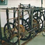 Ce mécanisme du XVII e siècle de forme rectangulaire (long.1.20m x larg. 0,50m x haut. 0,60m) est entièrement en fer forgé et assemblé par des clavettes.