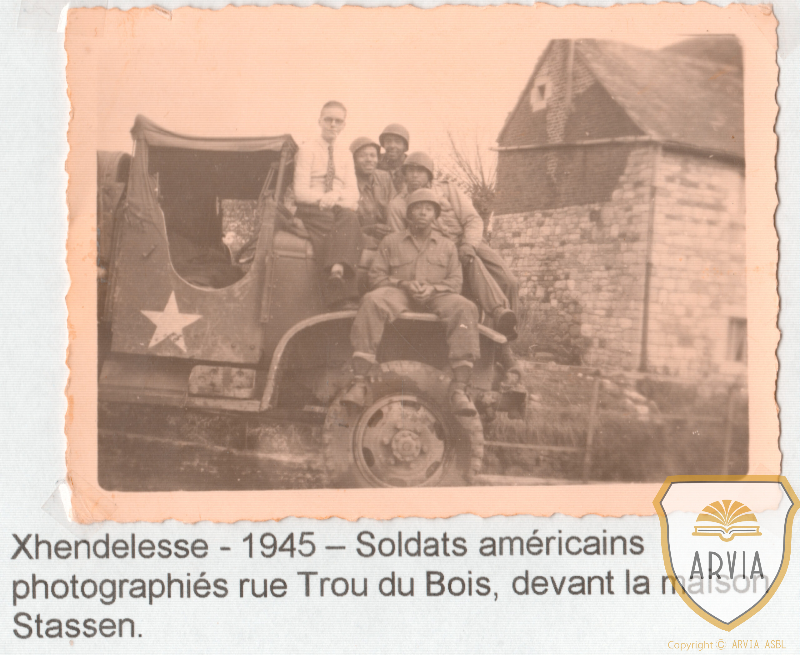 Xhendelesse-1945-Soldats Americains devant la maison Stassen rue Trou du bois 20 janvier 2026 Gérard Bonsang