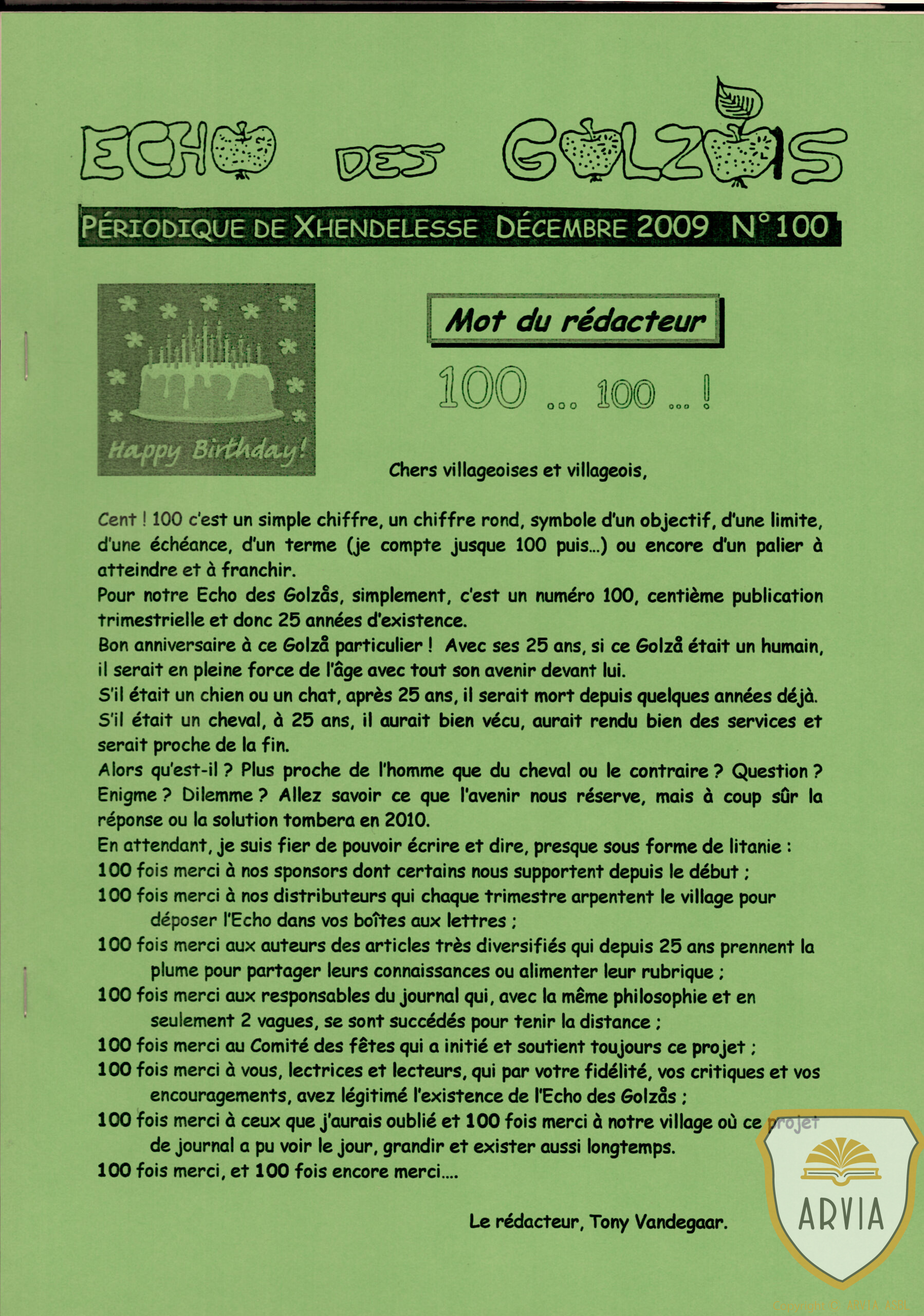 Xhendelesse-2009-extraits du périodique-« Echo des Golzons 100 » 11 janvier 202611 janvier 2026 Gérard Bonsang