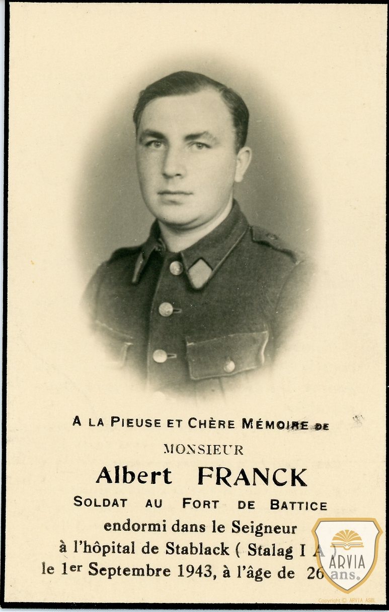 JOSE – HERVE -1943 – faire part de Décès – Albert Franck – cimetière de STABLACK – Stalag 1-A – poème